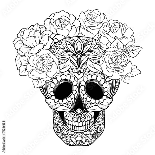 43+ beautiful images Roses And Skulls Coloring Pages - Coloring Pages Roses And Skulls Clip Art Library : Color this wolf woman and all the roses and feathers that surround her.. Search through 623,989 free printable colorings at getcolorings. Feel free to print and color from the best 39+ roses and skulls coloring pages at getcolorings.com. Fantastic adult coloring page, magnificent skull with roses and cross isolated on black background. Day of the dead, dia de los muertos, banner with colorful mexican flowers and icons. This printable coloring book features 21 pages of detailed sugar skulls inspired by dia de muertos that you can print and color as many times as you want.